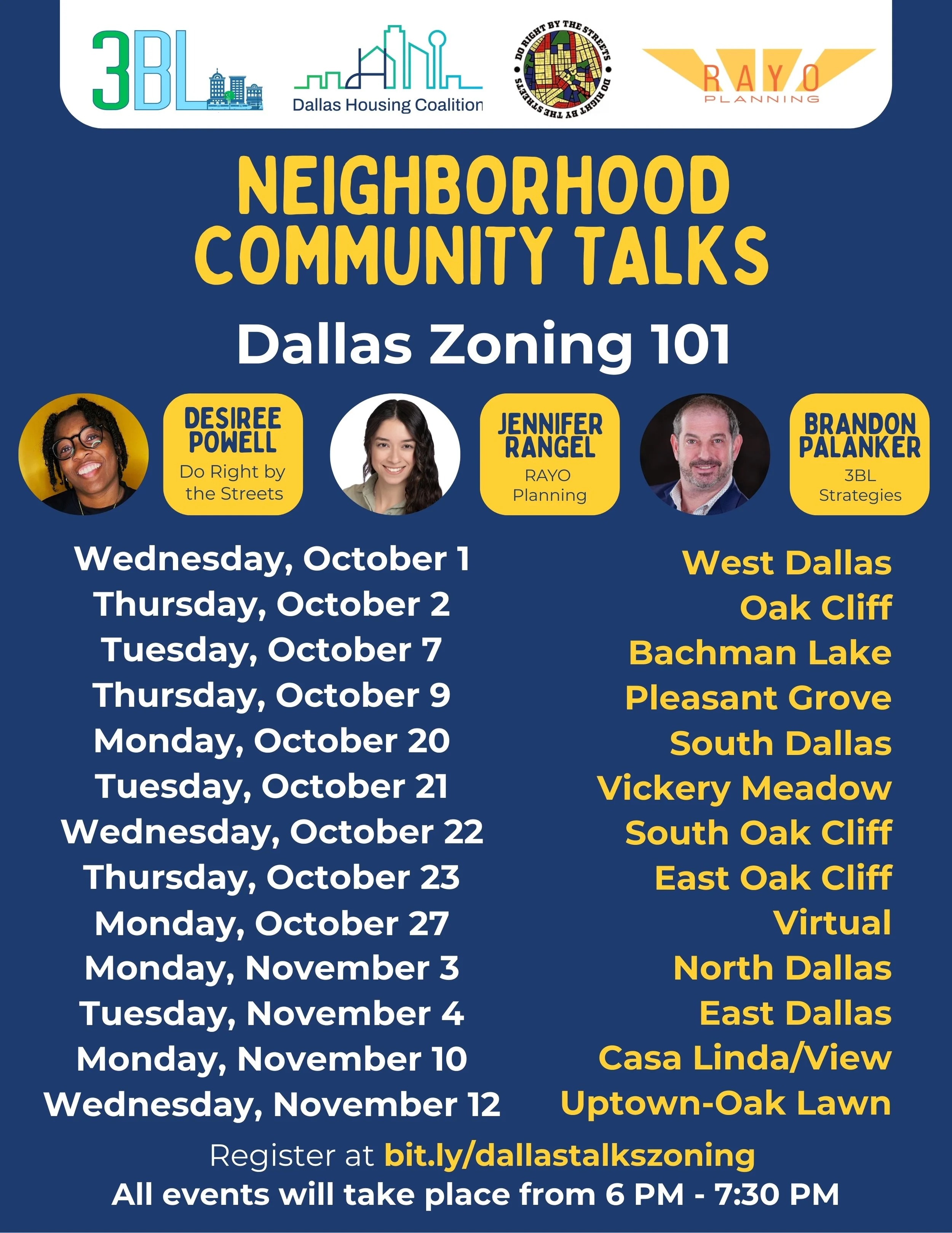 6 PM - 7:30 PM, multiple dates and locations, October 1 - November 12 - Zoning 101 Community Talks